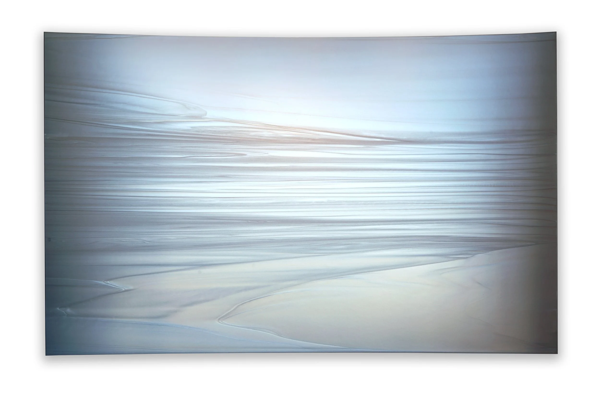 Andy Moses' mysterious and alluring paintings pose a subtle challenge: do we read them as landscapes, enveloping the eye as they do with forms both aqueous and mountainous? Or should we regard them as abstractions, pure plays of light and form, color and contour, literally bent into physical space? Moses welcomes either comprehension or both. This is art born of visual transcendence, seeking to find a bit of the glory of nature in the properties of paint.