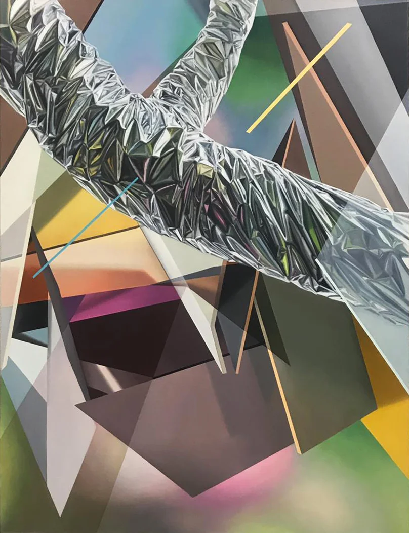 The title of this exhibition references the 1962 poem, “Conversation with a Stone,” written by Wislawa Szymborska. Through an imaginary dialogue between a human speaker and a stone, Szymborska examines the human desire to understand everything about the world around us and the inevitable reality that it is an impossible quest. Essentially, the stone in this poem serves as a metaphor for all that is incomprehensible to us. With the paintings in this exhibition, Peláez invokes the primordial form of the stone, highly rendered in multi colors, juxtaposed against hard-edge, planar backgrounds. These cryptic forms seem to defy gravity, weightless yet imposing, their origins and trajectory unknown. The viewer is left with more questions than answers, as Peláez’s paintings seem to challenge their own existence.
