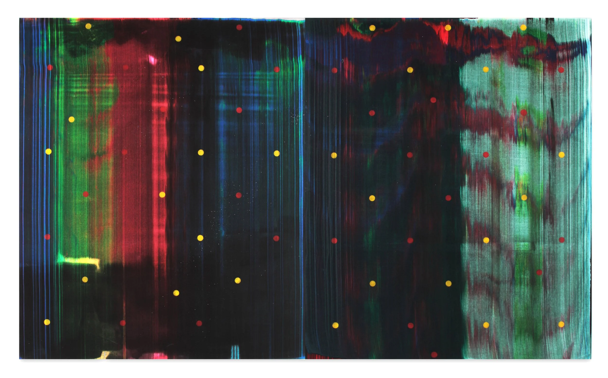 Ed Moses, Sato, 2008, acrylic on canvas, 72” x 60” (each panel) 72”x120” total dimension as installed