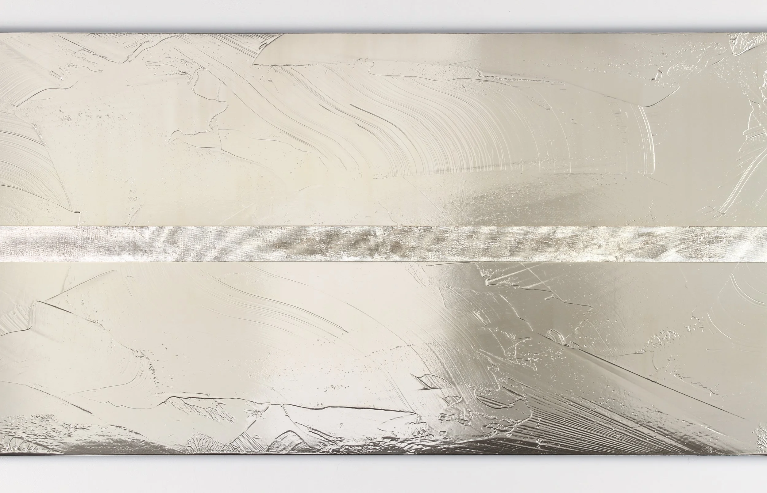 Jimi Gleason, Untitled, 2018, silver nitrate and acrylic on canvas, 48" x 126"